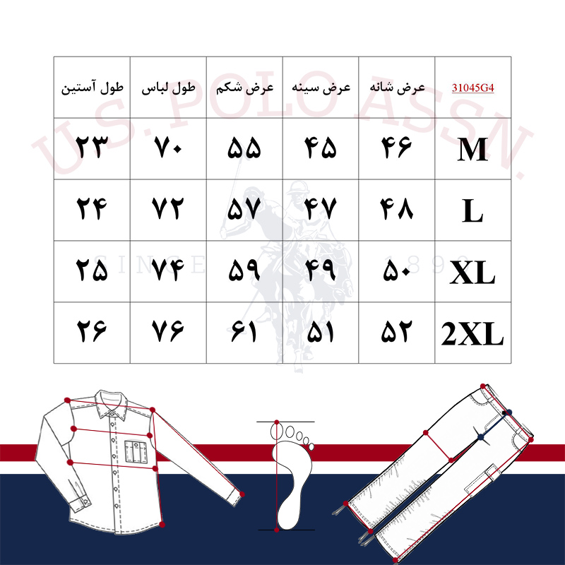 تصویر جدول سایز تیشرت مردانه برند یو اس پولو مدل 31045G4